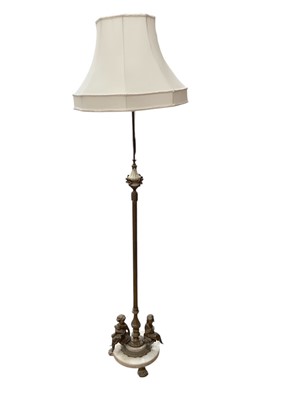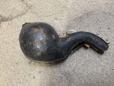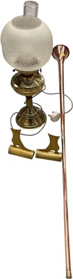 Lot 923Pair of Victorian brass boots, an oil lamp converted to electricity, and a large copper hunting horn
