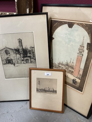 Lot 945William Renison (1866-1940) signed etching in glazed ebonized frame - Italian landscape, together with two signed etchings by Wilfrid Huggins of Venice (3)