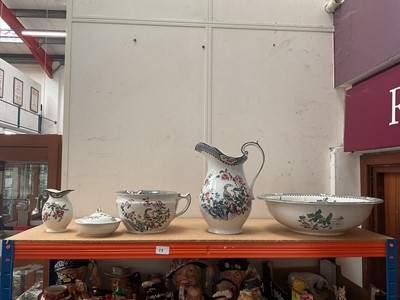 Lot 953Transfer printed wash jug and bowl, chamber pot, soap dish and vase.
