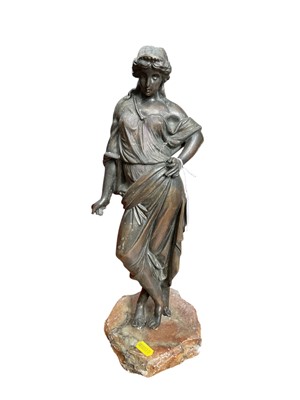 Lot 919Low pair of Art Deco style cast iron table pedestals, with Egyptian figural supports on stepped spread base, 44cm high