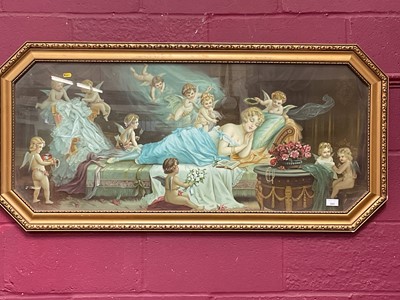 Lot 8851920s colour print , sleeping beauty with cherubs in glazed gilt frame