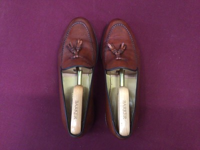 Lot 2070Pair of gentlemen’s dark tan leather Barker tassel loafer shoes size 10(as new), together with a luxury Loake shoe cleaning kit