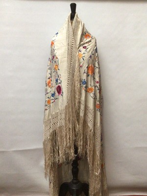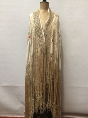 Lot 2080Chinese Cream Silk embroidered piano shawl with long fringing