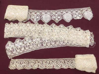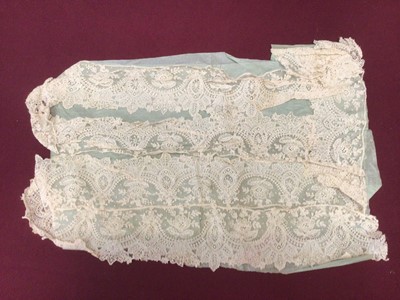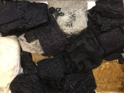 Lot 2088Box of lace including bobbin lace large fall cap, Maltese lace lengths and other items, bobbin lace wide collar and lenght, decorated net lace plus some lace table linens.