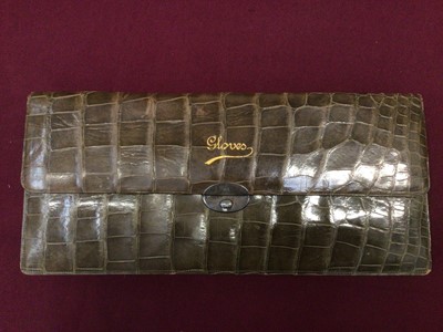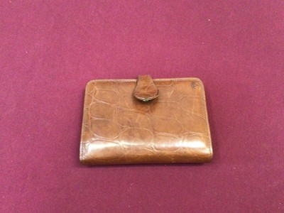 Lot 2059Victorian Crocodile Skin double sided wallet for gloves and handkerchiefs with silver claspes and corner. Import silver mark 1898.