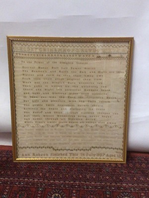 Lot 2083KG111 Needlework sampler with Alphabet, The Lord's Prayer and decorative borders. Ann Robson 1807 Age Seven