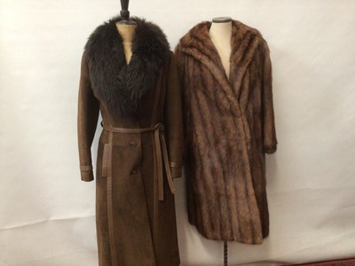 Lot 2084Vintage musquash fur coat, 1970's brown suede and leather coat and a fur wrap.