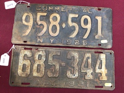 Lot 2009Two early American Car Licence plates, 685-344 N.Y. 1921 and Commercial 958. 591 N.Y. 1926 (2)