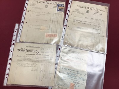 Lot 2027Rare collection of early motoring ephemera including bills for 1908 Humber cars and Humber motorcycle bills , 1920s Norton Motors bills , other motoring ephemera including 1920s Motor Cycle magazin...