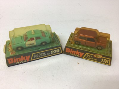 Lot 1957Dinky selection of boxed models Ford Escort Police Car 270, Police Accident Unit No. 287, Routemaster Bus No. 289, Mini Clubman No. 178, Jensen FF No. 188, AA Service No. 412 (6)