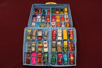 Lot 1958Diecast boxed selection including Matchbox Speed Kings x 3, Solido, Britains and others plus a Matchbox carry case with contents and a selection of Dinky and Corgi catalogues