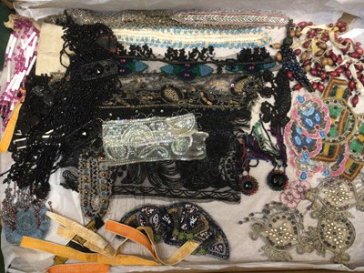 Lot 20891920's and 1930's dress beaded fringing, insets and embellishments loose and in chocolate boxes, good quantity.