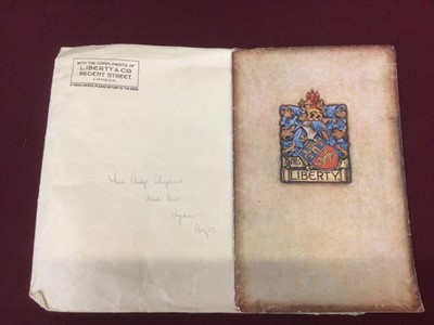 Lot 2093Liberty Christmas Gifts 1932-1933 catalogue. Coloured pages, scarves, ties, silk shawls, fabric household items, handbags, dressing gowns, soft furnishings, leather goods etc. In envelope stamped '...