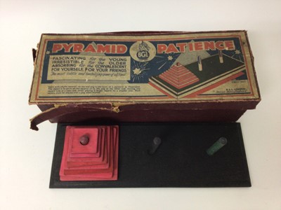 Lot 1980Selection of boxed toys including Pyramid Patience, Greyhound Table Racing, Race Game (horse racing) also Magic Flote, miniature cast metal projector etc.
