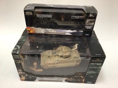 Lot 1964Selection of toys including Finecast metal steam engine, Forces of Valor tank and tank carrier both boxed, Tamiya construction kit, leopard A4 tank and metal figures etc