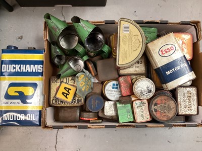 Lot 2031Collection of four vintage Castrol oil jugs, together with two AA badges, Duckhams oil can and other vintage tins etc.