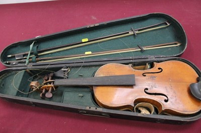 Lot 2210Antique violin with two bows in wooden case