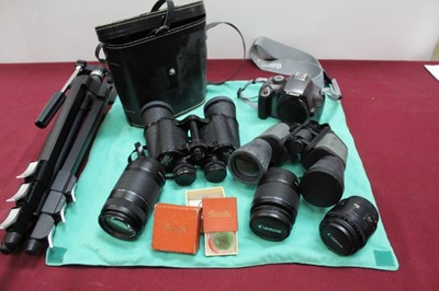 Lot 2353Canon EOS 1100d with lenses, together with other camera equipment and binoculars