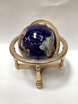Lot 2417Contemporary table globe with semi precious hard stone inlaid decoration.