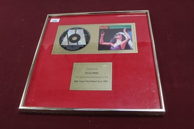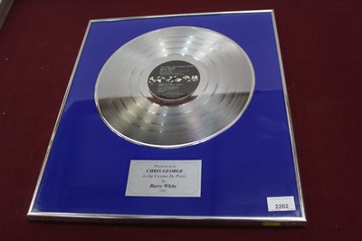 Lot 2202Barry White framed platinum record, presented to nightclub owner Chris George