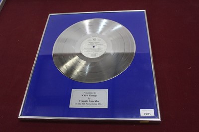 Lot 2201Frankie Knuckles framed platinum record, presented to nightclub owner Chris George
