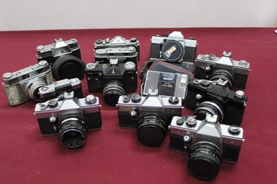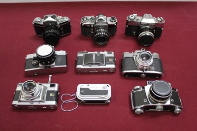 Lot 2354Group of cameras and lenses, including several Praktica, Kodak Retinas, Bolex cine camera, etc