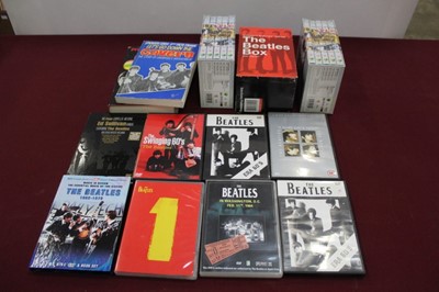 Lot 2238Three boxes of music related DVD's, video's and books etc, including The Beatles, John Peel, Mick Farren and compilations