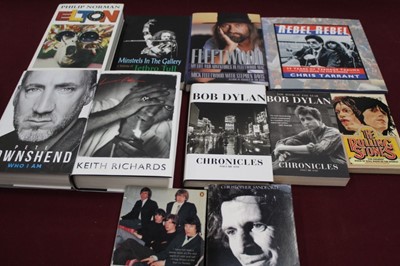 Lot 2248Three boxes of music related items including books, DVD's videos and magazines featuring Rolling Stones, Bob Dylan, The Who and Jethro Tull etc