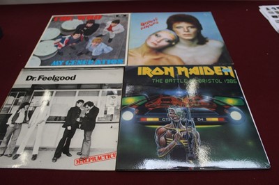 Lot 2251Two boxes of vinyl records including approximately 45 LP's and 100 plus singles including Iron Maiden, The Battle of Bristol 1986, Eddie and The Hot Rods, Dr Feelgood, Metal Dance Industrial Post P...