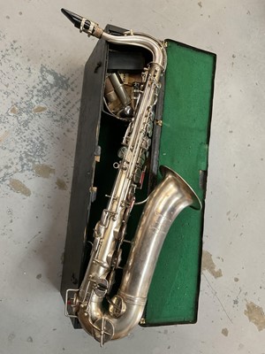 Lot 2253Early 20th century silvered Hawkes and Son tenor saxophone, model 1234-A, in fitted case