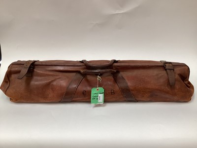 Lot 2433Vintage brown leather cricket bag with brass lock and stamped initials