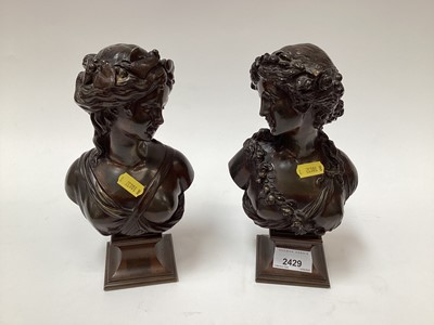 Lot 2429A pair of patinated bronze busts, each depicting a classical lady on a socle, one signed 'Marin', the other 'L.V.E. Robert', 22cm high