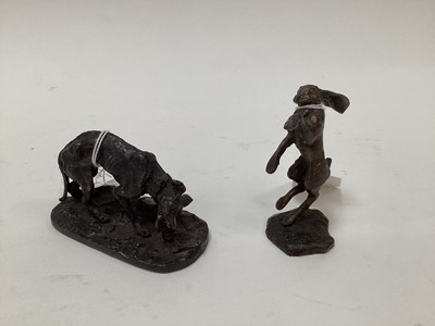 Lot 2462Bronze figure of a dog signed Mene, 10cm wide, together with a bronze figure of a hare