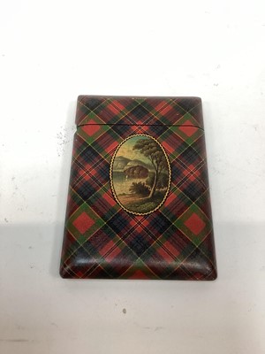 Lot 2463Victorian Mauchline Tartanware card case, in McPherson tartan, with an oval scene of Ellen's Isle, Loch Kathrine, 11.5cm x 8cm