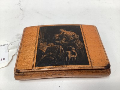 Lot 2468Rare Victorian Mauchline ware snuff box, with a penwork titled scene from the 'Tam O'Shanter', 9cm across