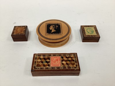 Lot 2473Three Tunbridge ware stamp boxes, and another Mauchline type stamp box
