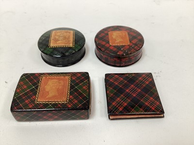 Lot 2474Three Tartanware stamp boxes and one Tartanware stamp holder (4)