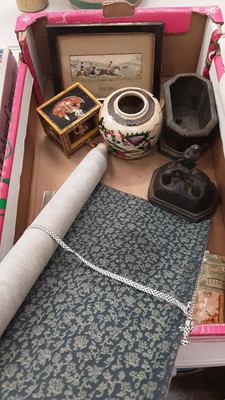 Lot 2692Chinese famille verte ginger jar, Chinese scroll, Chinese ivory puzzle ball and stand, Persian miniature chest of drawers Etc