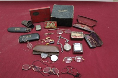Lot 2707Collection of vintage spectacles, some in cases, together with a silver open faced pocket watch and albert chain.