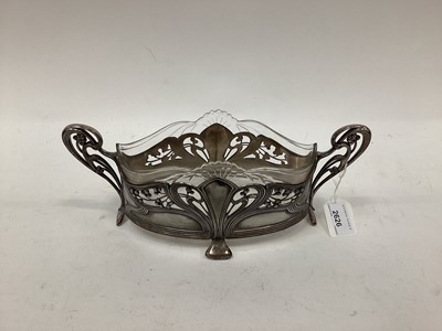 Lot 2627Art Nouveau pewter bowl with blue glass liner
