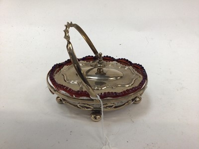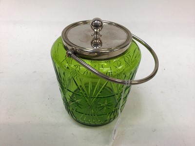Lot 2654WMF super nickel? Green glass biscuit barrel with Silver plated mount