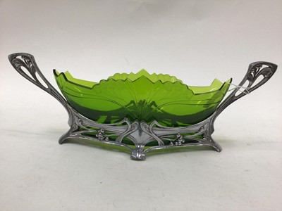 Lot 2638Art Nouveau pewter vase with green glass liner