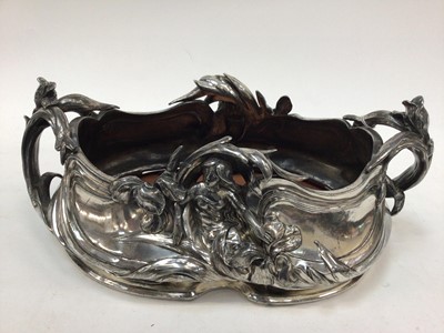 Lot 2636Art Nouveau pewter spill vase modelled as a basket with glass liner