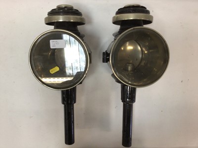 Lot 2675Pair of carriage lamps, copper railway lamp, street light and quantity of oil lamp parts and fittings. (To be sorted into suitable lots).