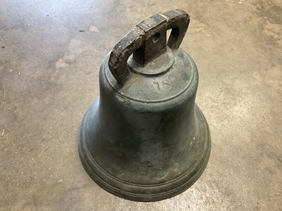 Lot 262019th century bronze bell, numbered 18, 23cm high