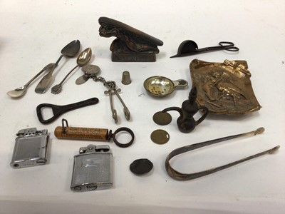 Lot 2644Trinidad Mastic Asphalt advertising desk weight, together with lighters, silver sugar tongs and sundries.