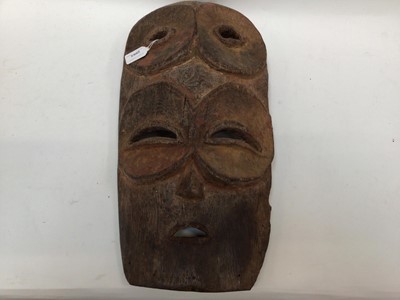 Lot 2662Large African wooden mask with four eyes, traces of polychrome, together with a smaller female African mask (2)