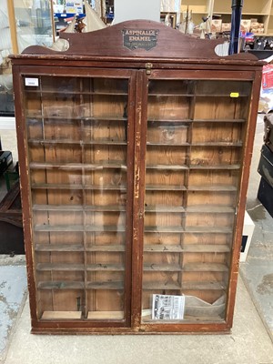 Lot 2666Vintage glass fronted cabinet with label for 'Aspinall's Enamel - The Original & Best', 110cm high x 76cm wide