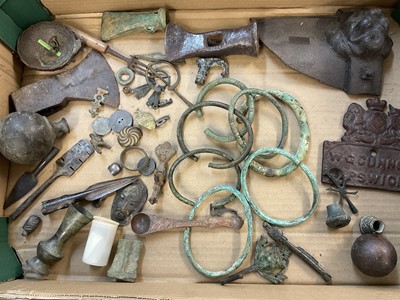 Lot 2683Good group of metalware antiquities, metal detecting finds etc, including some post-mediaeval