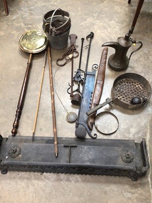 Lot 2674Sundry metalwares and other items, including a fender, Middle Eastern coffee pot, fireplace accessories, etc
